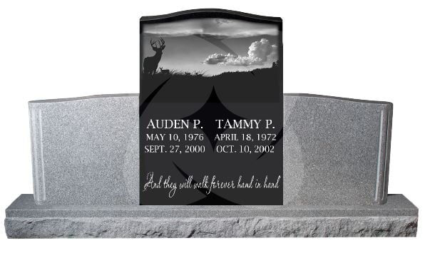 Laser engrave directly onto black granite or insert a laser etched tile into any monument color.